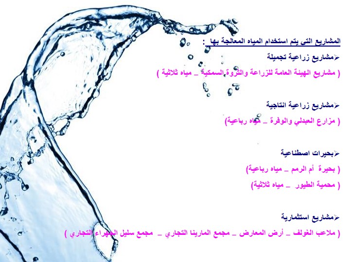 Sulaibiya Treatment Plant is one of the largest treatment plants that use “Reverse Osmosis” technology to treat sewage water. The plant operated in 2004 of design capacity 425000 m3/d, while the maximum design capacity after expansion have reached 600000 cubic meters per day. The plant produces quaternary treated water up to 350000 m3/d .